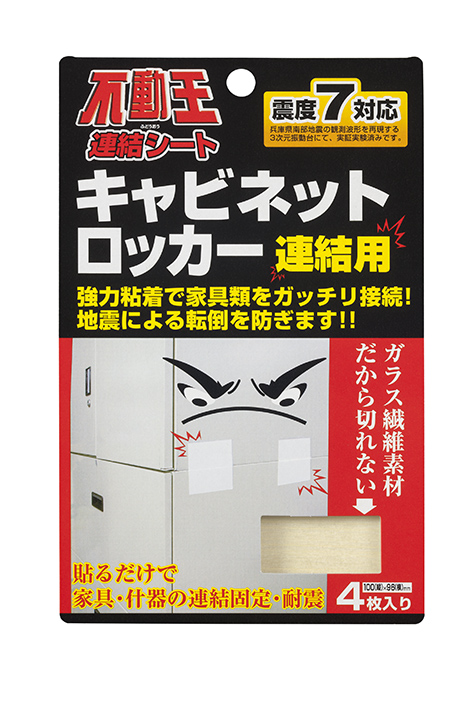 キャビネット類の上下の連結に特殊なガラス繊維の連結シート。ロッカールーム等の什器連結にも貼るだけで固定できます。